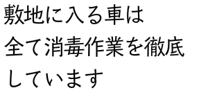 敷地に入る車は、社員、業者に関わらず全て消毒作業が行われます。特に、鶏舎に搬入する車は徹底した洗浄作業が行われます。防疫上の観点から入場を制限しています。