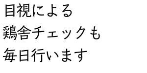 人の目による鶏舎のチェックも毎日欠かさずに行っています。