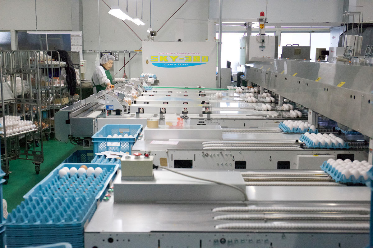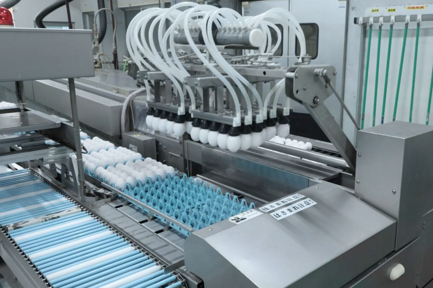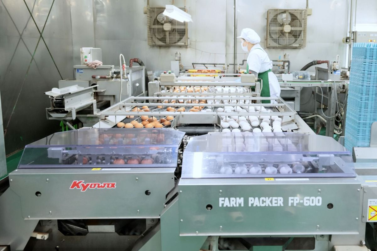毎時38,000個の処理が可能で、新鮮な卵を安定して供給しています。