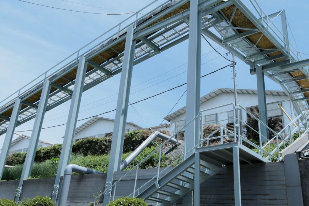 各鶏舎には鶏糞回収用のコンベアも設置されています。