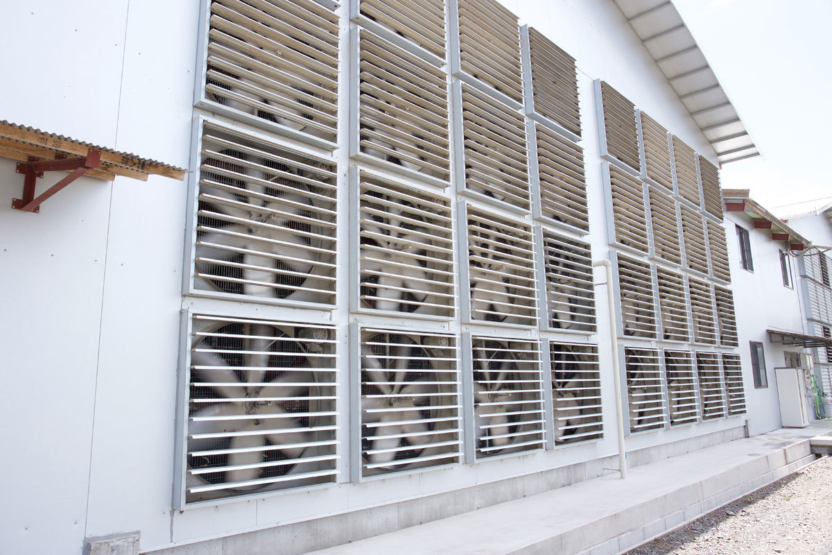 大型のファンにて温度や湿度の調整はもちろん、鶏舎内の空地循環も行っています。
