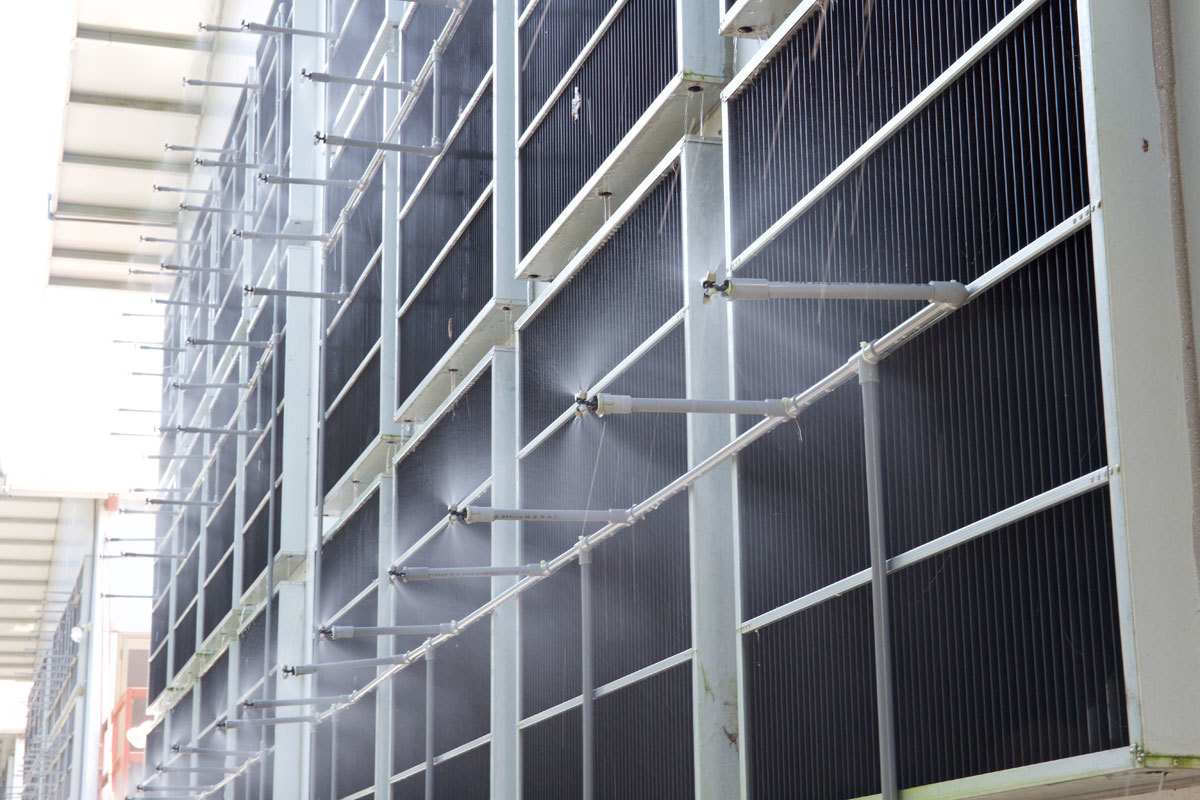 スプリンクラーも設置。夏の暑い時期にもより快適な環境づくりに努めています。