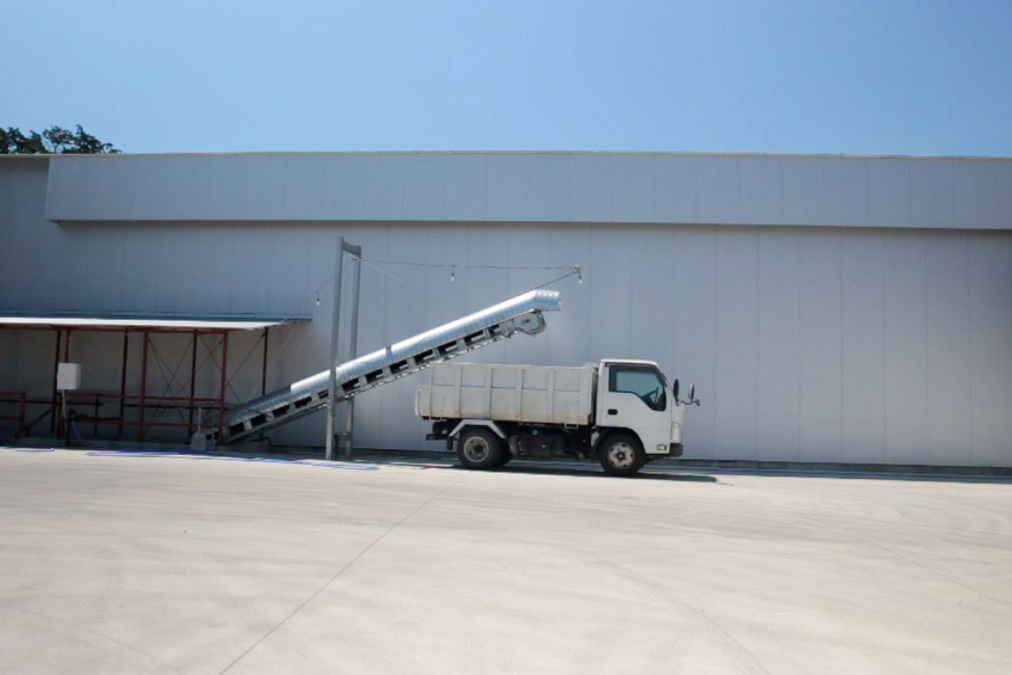 鶏舎から出た卵は、敷地内をそのままベルトコンベアにて運ばれます。